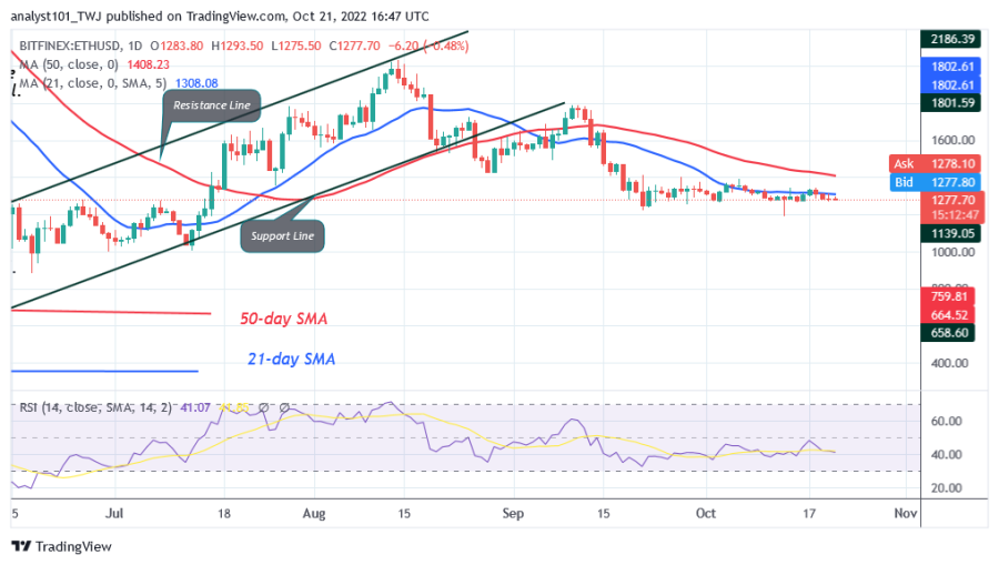 The price of Ethereum (ETH) is in a sideways trend as the largest altcoin consolidates above the $1,200 support. In recent price action, Ether has moved between $1,220 and $1,400.