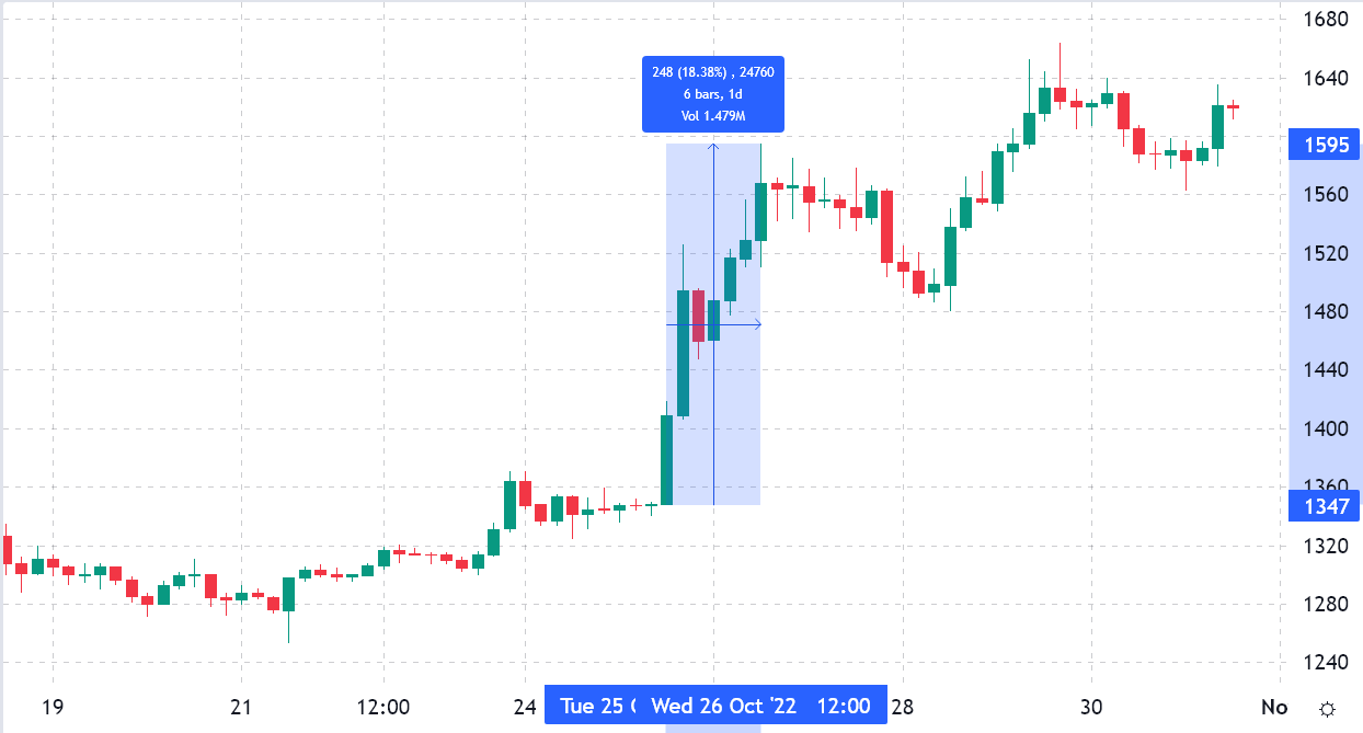 A $250 surprise rally took place between Oct. 25 and Oct. 26, pushing Ether (ETH) price from $1,345 to $1,595. The movement caused $570 million in liquidations in Ether’s bearish bets at derivatives exchanges, which was the largest event in more than 12 months. Ether price also rallied above the $1,600 level, which was the highest price seen since Sept. 15.