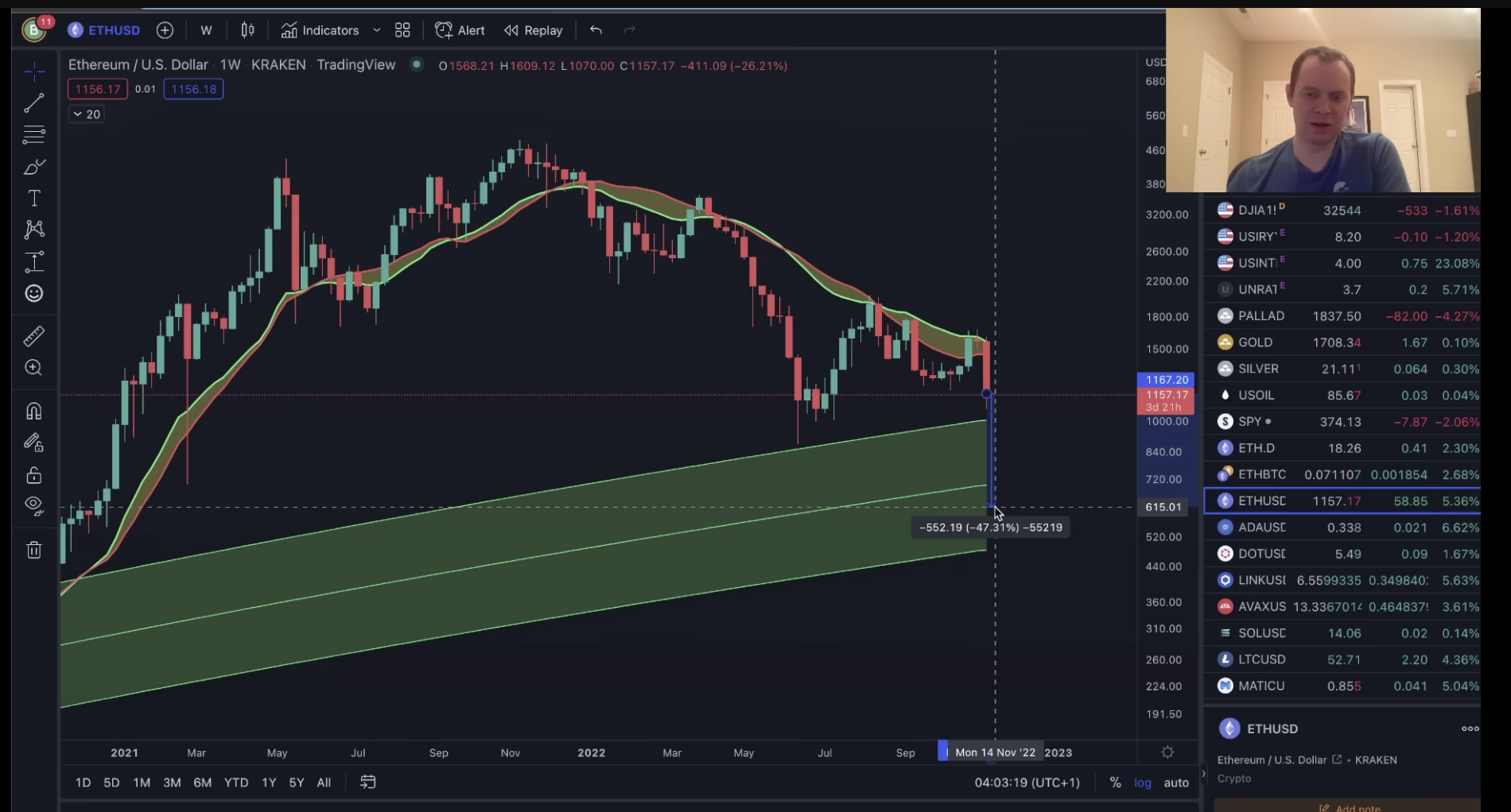 If you remember back to 2018, the drawdown that Ethereum had was about 95% or so. I’m not saying Ethereum is going to go down 95%, but even if it went down, say 87%, which is what Bitcoin went down after its 95% bear market, that would still put Ethereum at $600.”