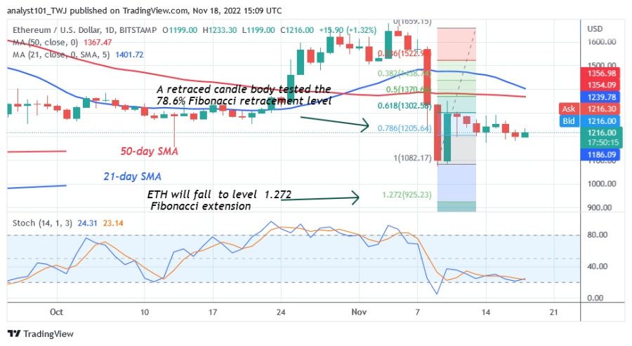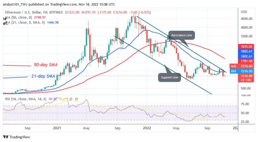 Ethereum (ETH) is barely moving as it sinks near current support. Ether has been stuck between levels of $1,070 and $1,350 since November 9. Sellers have failed to exert more selling pressure below current support after the initial breakdown on November 9.