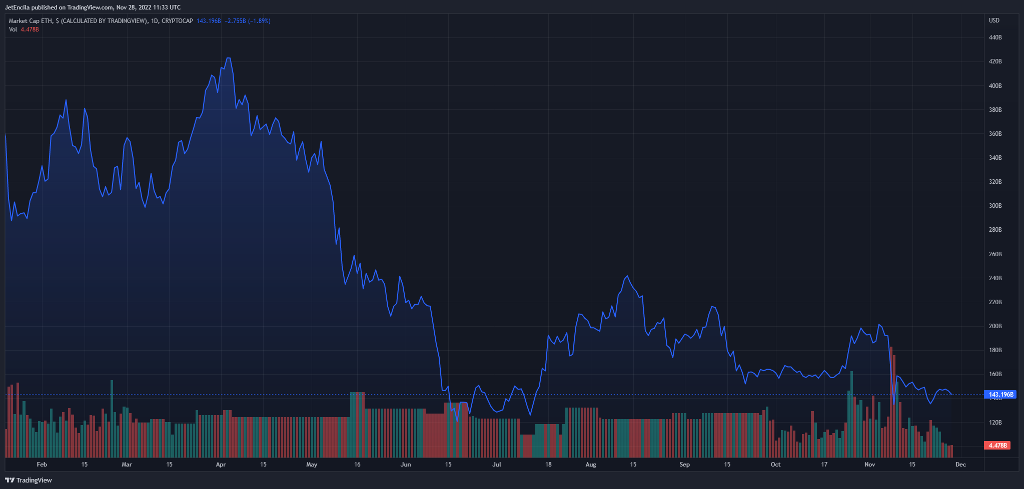 ETH total market cap at $143 billion on the daily chart | Featured image from TradeMap, Chart: TradingView.com