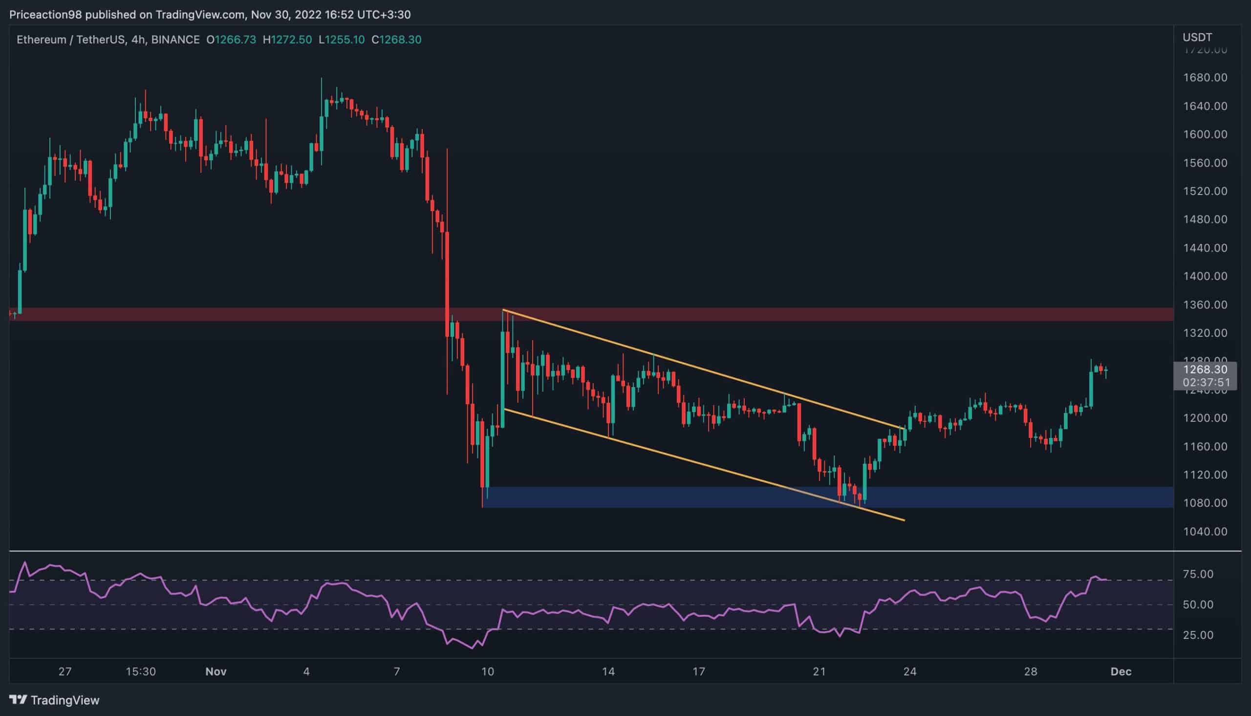 While the market structure still remains bullish on this timeframe, price action must be monitored cautiously to determine whether ETH could reach the $1350 level or if a bearish reversal is a more likely outcome.