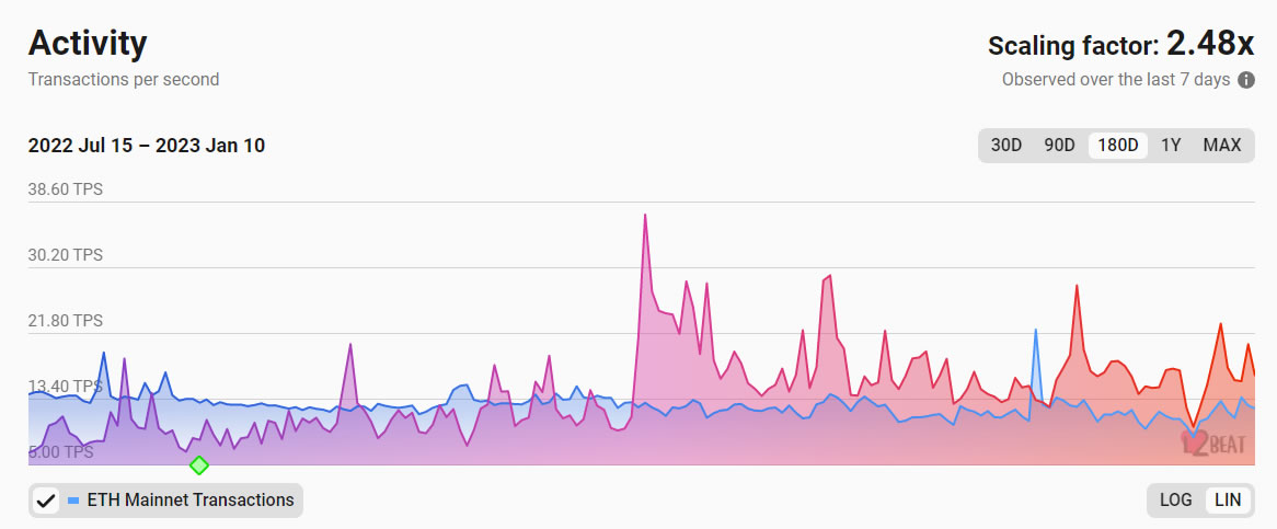 On Jan. 10, Ethereum processed an average of around 12 TPS compared to the L2’s average of nearly 16.5 TPS.