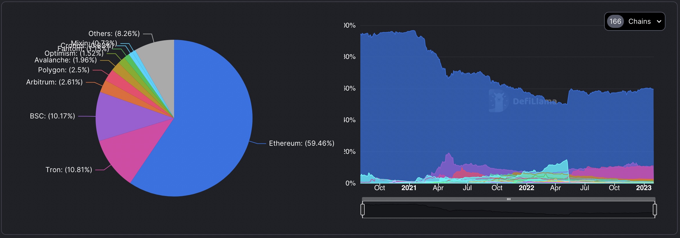 Although ETH is the second-largest cryptocurrency by market cap, Ethereum is the leading proof-of-stake (PoS) network. At the time of writing, it accounts for approximately 65% of the total value locked in decentralized finance (DeFi) protocols, sitting at around $48.7 billion.