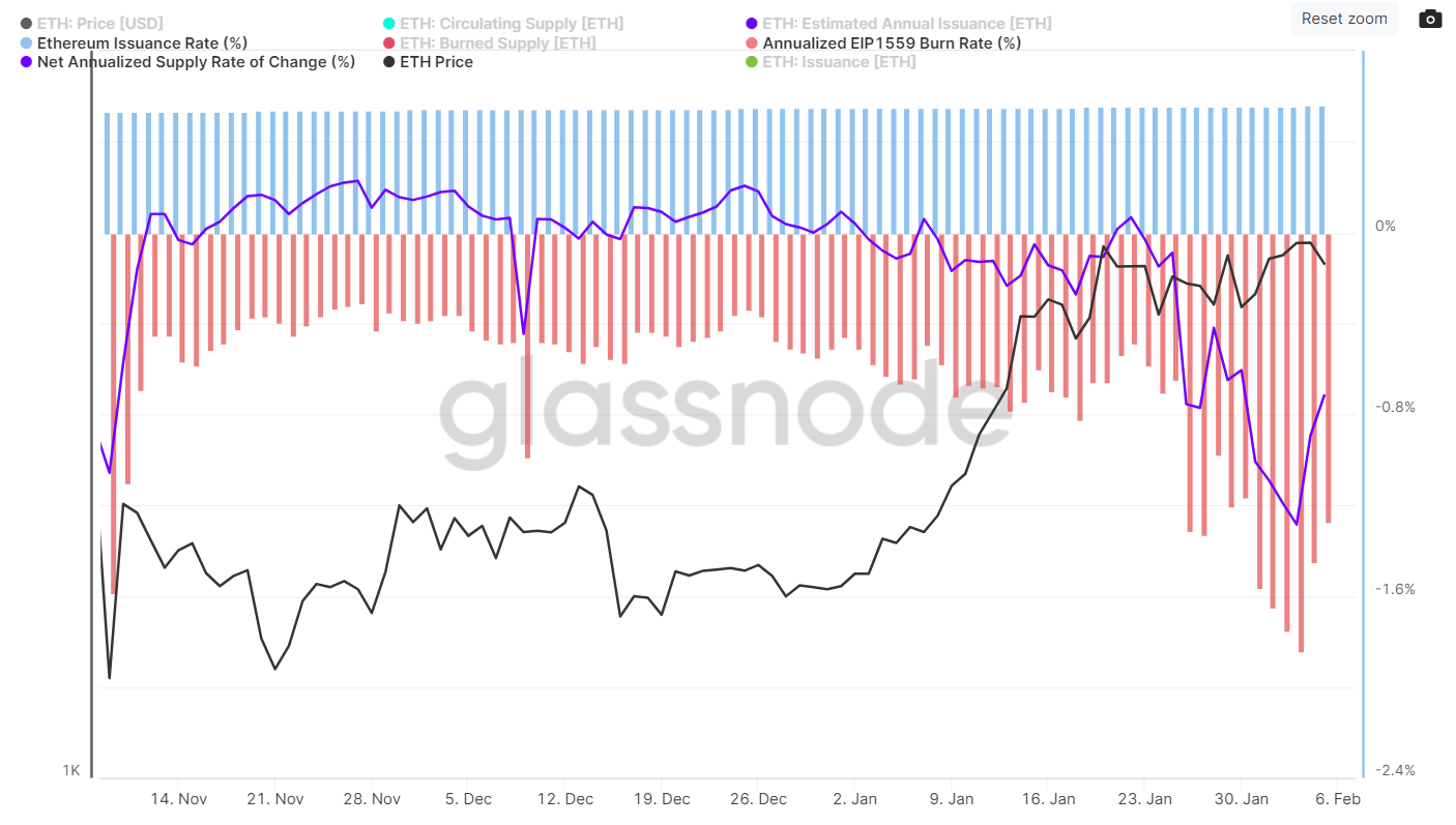 Higher fees are a sign of higher Ethereum blockchain usage, which may also ensure that the Ethereum inflation rate remains negative in the near future, Bernstein said, pointing out that the ETH supply has been in deflation for over two weeks now. According to Glassnode data, Ethereum’s net annualized rate of supply change was last around -0.7%.
