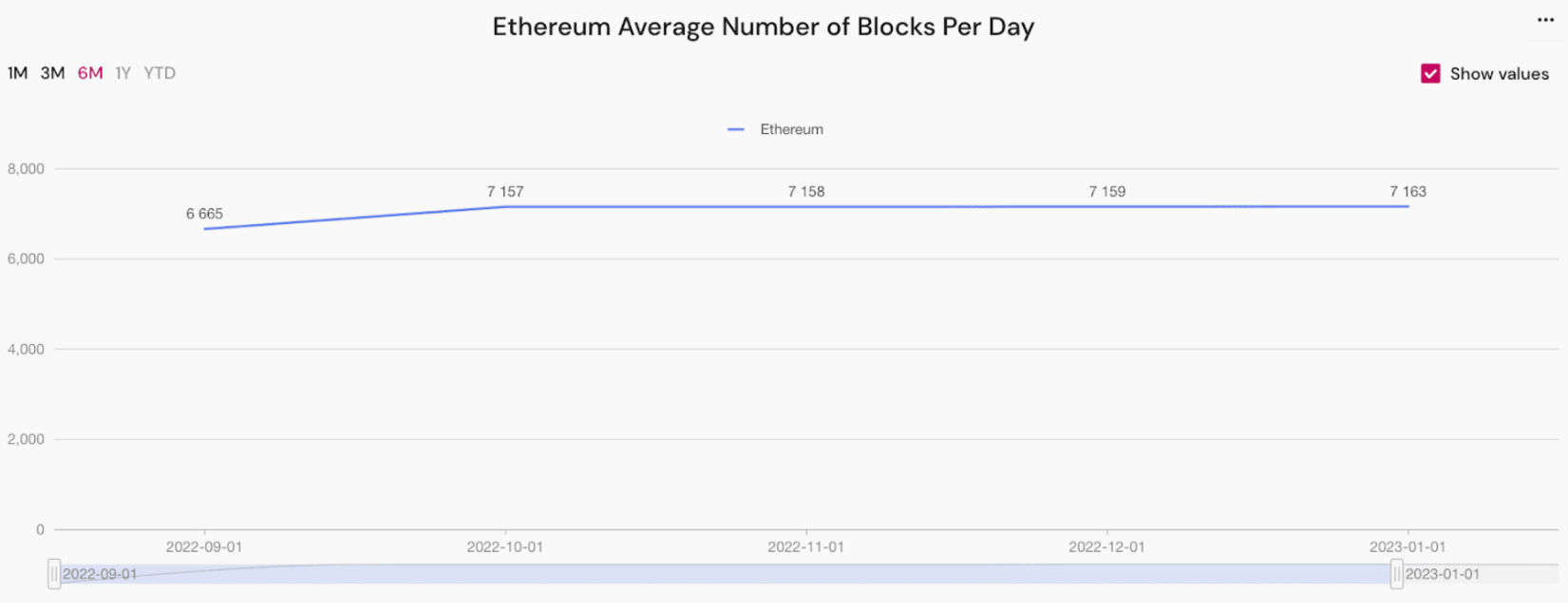 Ethereum block statistics show that the average number of blocks mined each day showed little to no change while the total block size per month increased by 7%. Following The Merge, daily average block data has been stable at around 0.01% monthly. The total Ethereum block size per month for January was 17.24 GB, up 7.08% from December’s 16.1GB total.
