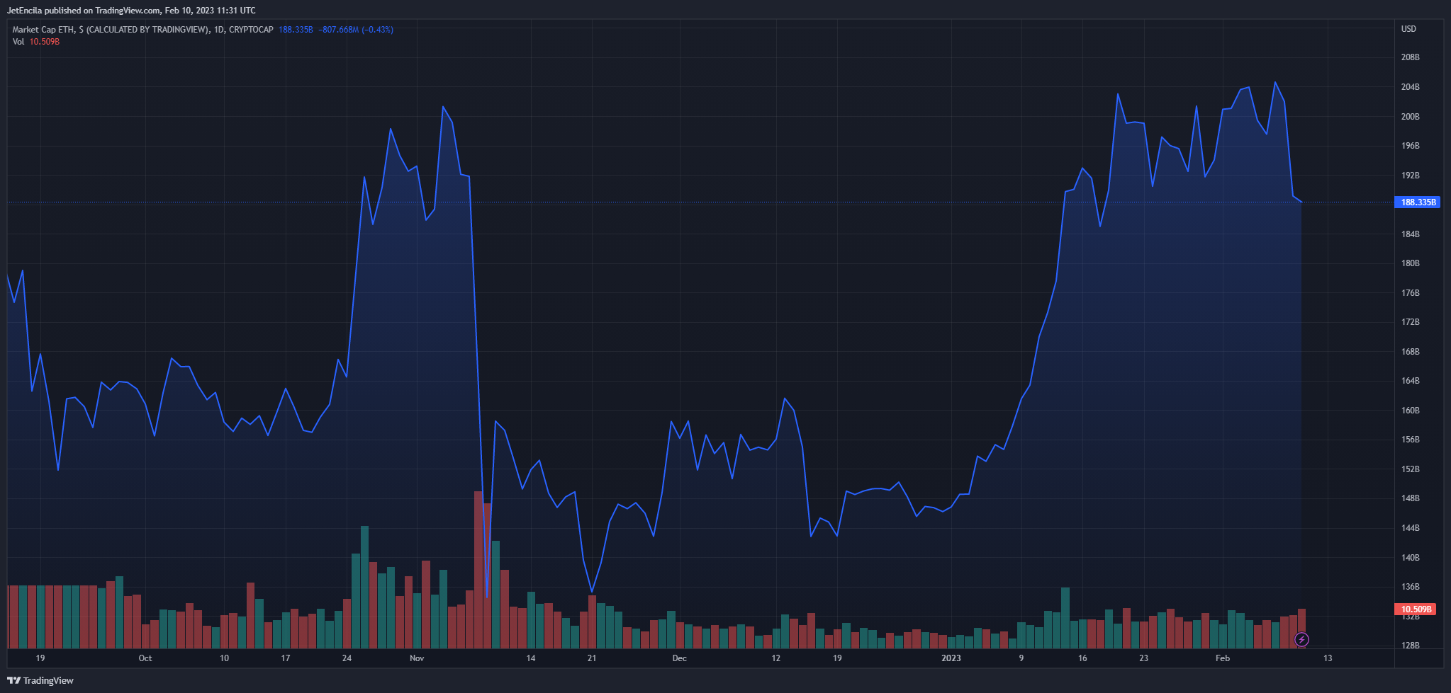 ETH total market cap at $188 billion on the daily chart | Chart: TradingView.com