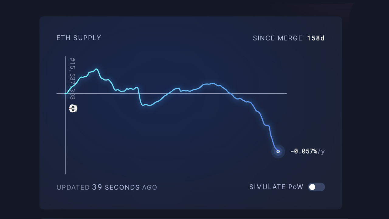 After the transition from proof-of-work (PoW) to proof-of-stake (PoS), Ethereum’s annual issuance rate has been reduced to negative 0.057%, according to statistics 158 days after The Merge. The metrics indicate that more ethereum tokens have been removed than issued, and if the chain were still under PoW consensus, 1,823,678 ether would have been minted to date.