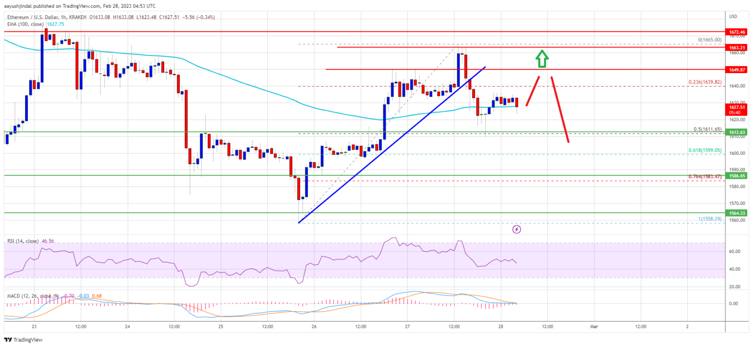 Ethereum price attempted a fresh increase from the $1.600 support zone. ETH climbed above the $1,640 level, but the bears were active near the $1,660 resistance zone. A high was formed near $1,665 and the price started another decline, similar to bitcoin.