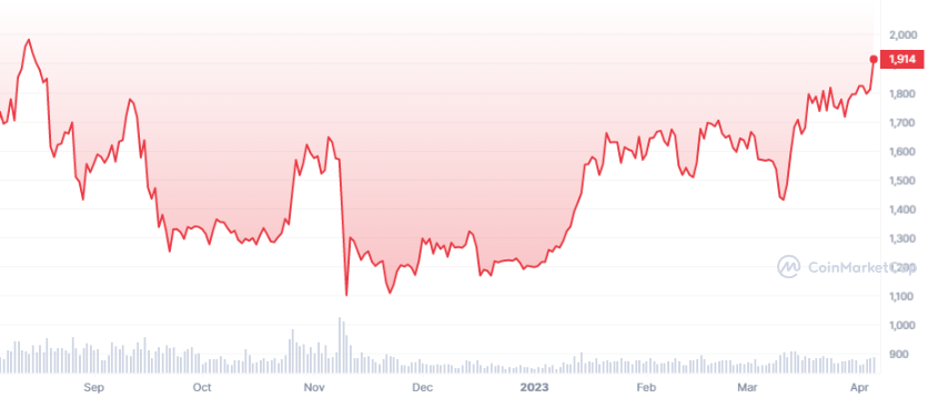 CoinMarketCap data shows the last time Ether was over $1,900 was on Aug. 16, 2022, amid a broader crypto sell-off at a time when the United States Federal Reserve was hiking the Federal Funds rate at a record pace to combat inflation.