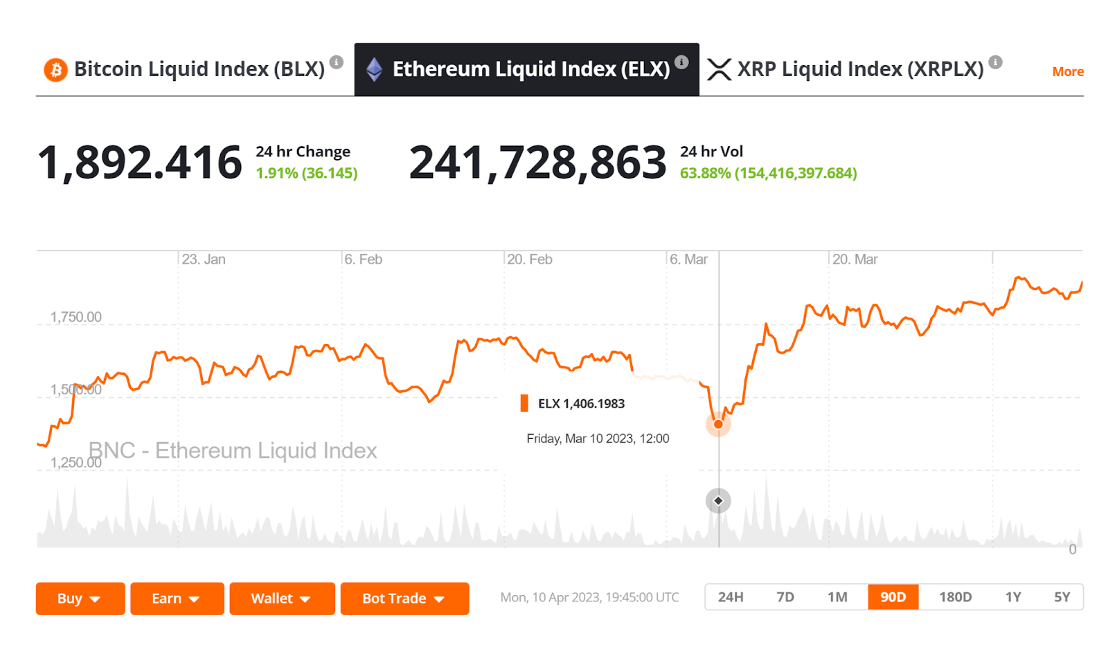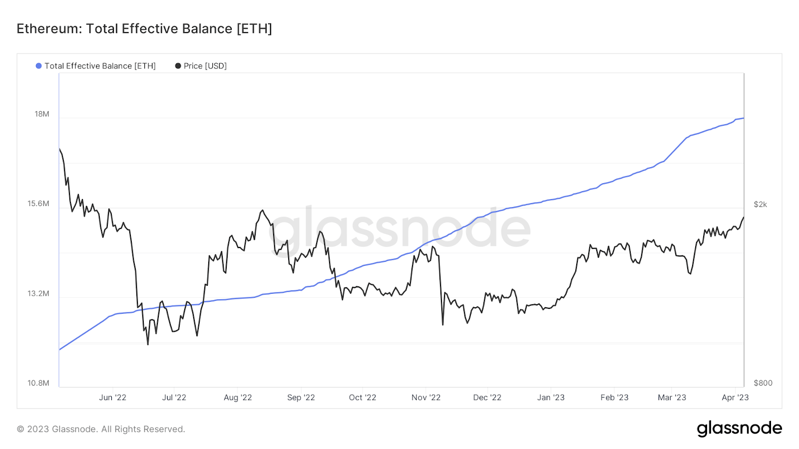 In the lead-up to the Shanghai upgrade, the price of Ethereum has soared. The asset is up ~28.9% in the last 30 days. The strong performance may not be driven purely by the excitement around the Shanghai hard fork, though, given the strong performance of other large-cap digital assets. In fact, Ethereum is actually lagging as in the last 30 days the Bitcoin price (BTC) is up ~42.8% and the XRP price is up ~39.8%.