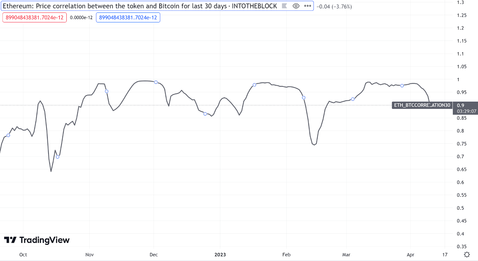 The correlation between ETH and BTC is also high and has been historically high. This suggests that either the same factors drive the price of both assets or one asset leads the other. BTC’s excellent momentum in the last month has been driven by its position as the ‘highest beta monetary irresponsibility hedge.’ Bitcoin has enjoyed excellent momentum as traditional financial markets have stuttered in recent months.