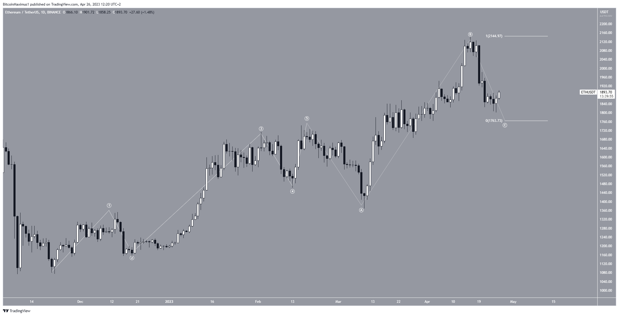 A closer look at the technical analysis from the daily time frame shows that there are two possible counts in play, thus giving an undetermined ETH price prediction. The main one is bearish while the alternative is bullish.