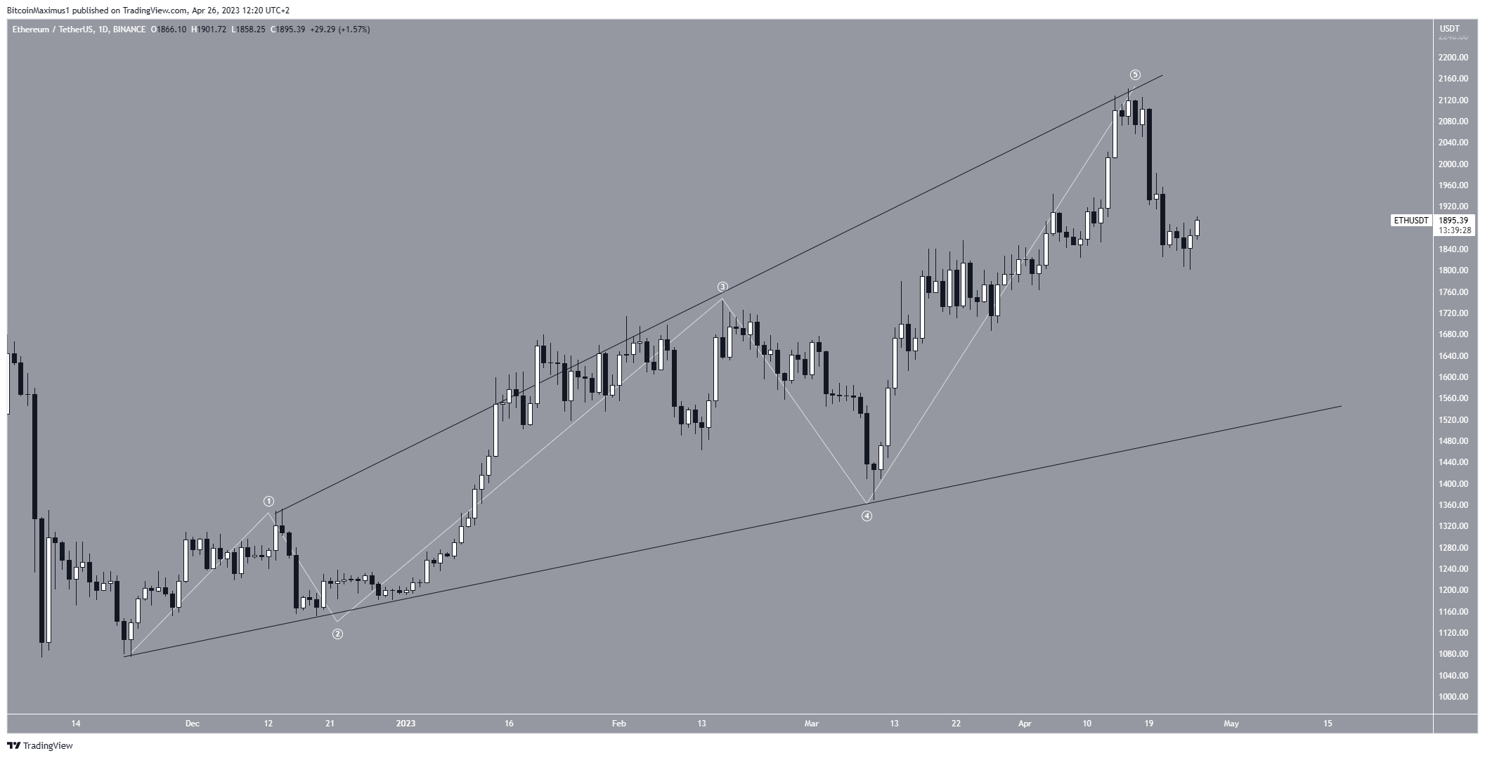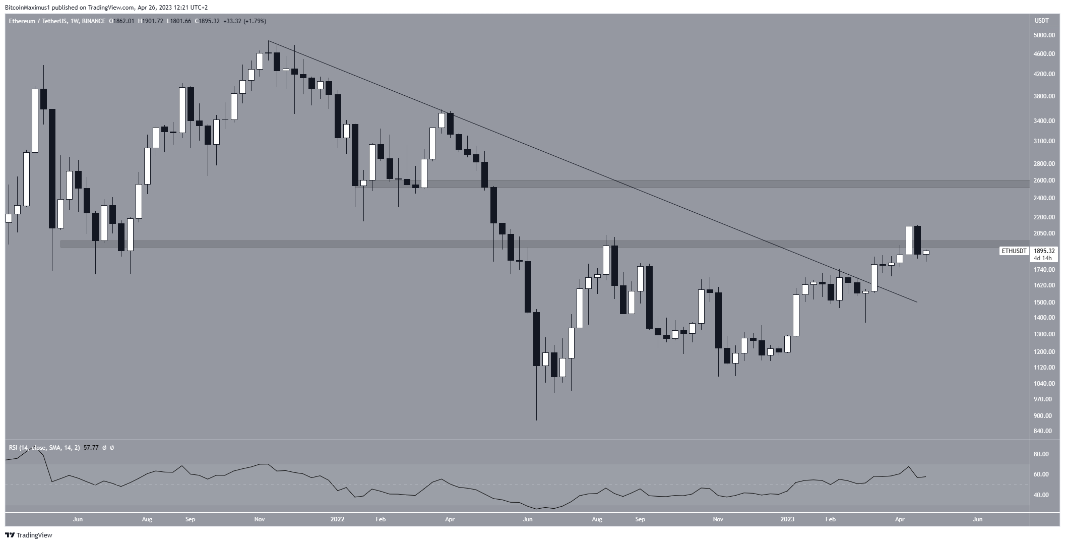 However, the ETH price failed to sustain its breakout last week. Rather, it decreased and fell below the $1,930 horizontal support area. This is considered a bearish sign since the price failed to sustain the breakout.