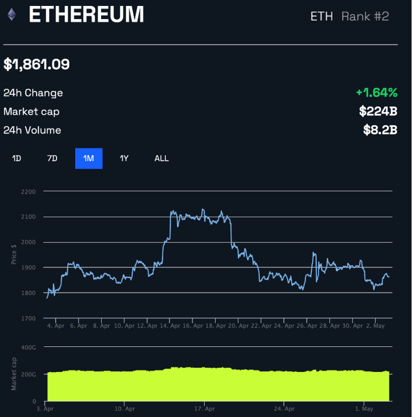 ETH has fallen significantly since reaching an all-time high of over $4,800 in November 2021. It’s now trading back around the $1,860 mark at the time of writing.