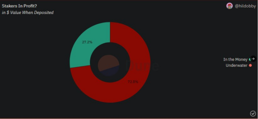 The ETH staked through principal deposits accounts for 93.82% of 18.93 million in locked ETH. Here, staking activity overpowered withdrawals by a significant margin. But, the decline in price action and increase in staking has raised some concerns among experts. Loss-making ETH stakers could even pose a threat, according to analysts at Delphi Digital, a famed crypto research platform.