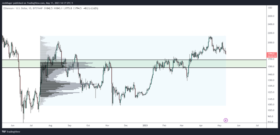 Indeed, the mid-$1,500s area is the level of interest in the previous range that the cryptocurrency analyst Josh Rager sees for Ethereum if the crypto market continues its bearish trend, according to his tweet and chart observations shared on May 11.