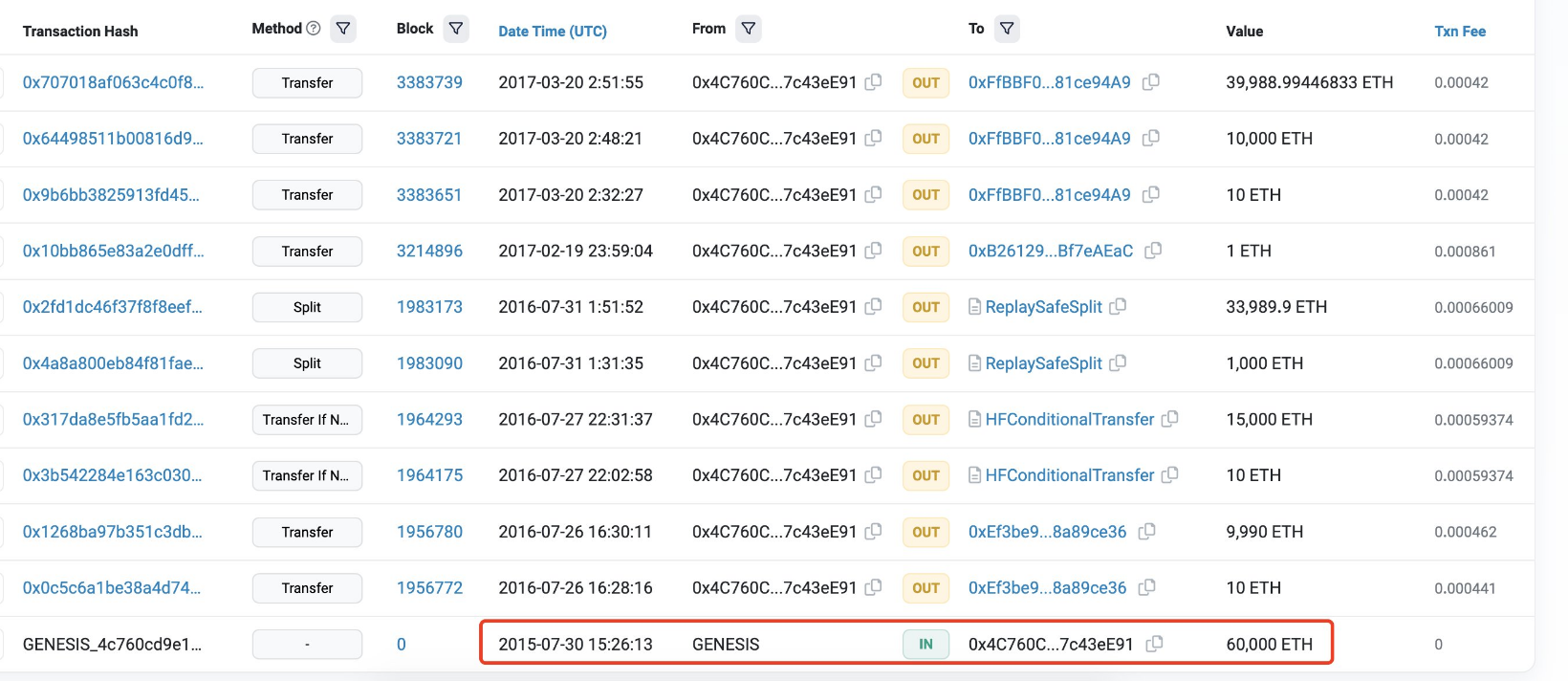 The history of this whale dates back to Ethereum’s Genesis phase, specifically during the platform’s ICO, when it first took shape. Participating in the ICO, this investor was granted an astounding 60,000 ETH, a testament to its early belief and support for the Ethereum network.