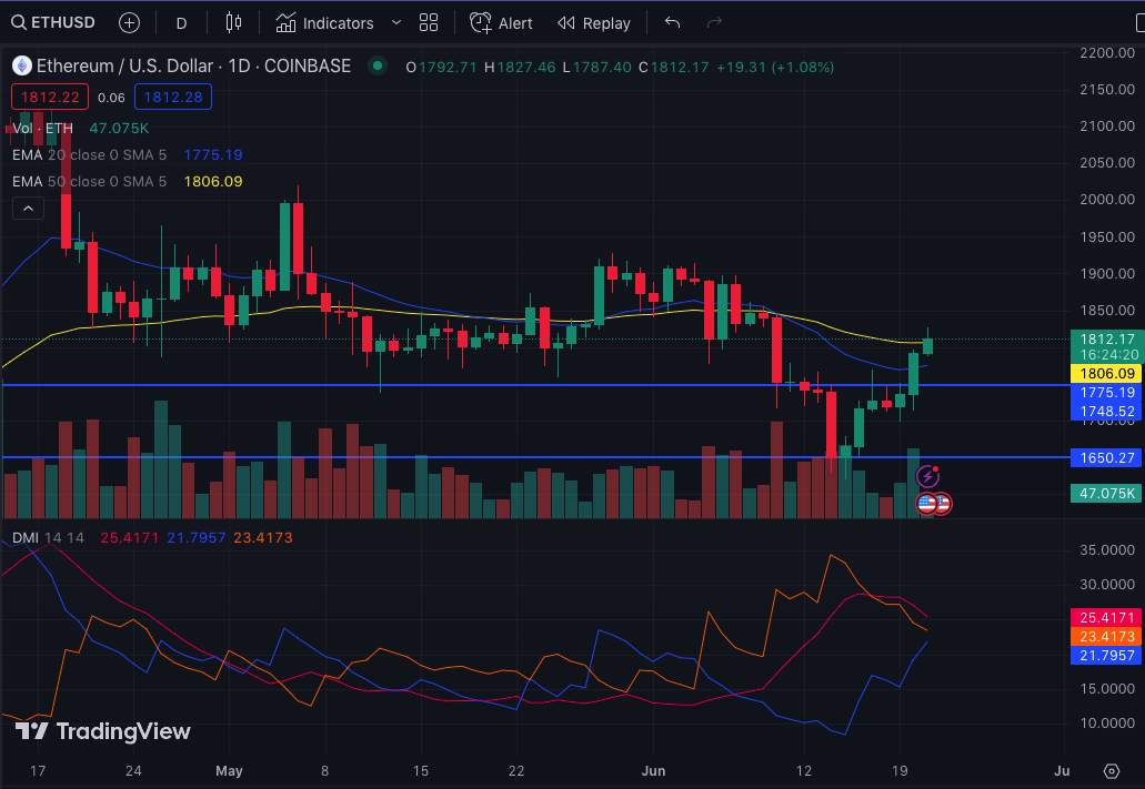 One reason ETH was able to cross the $1,800 mark was the bullish push created at $1,650 on June 15.