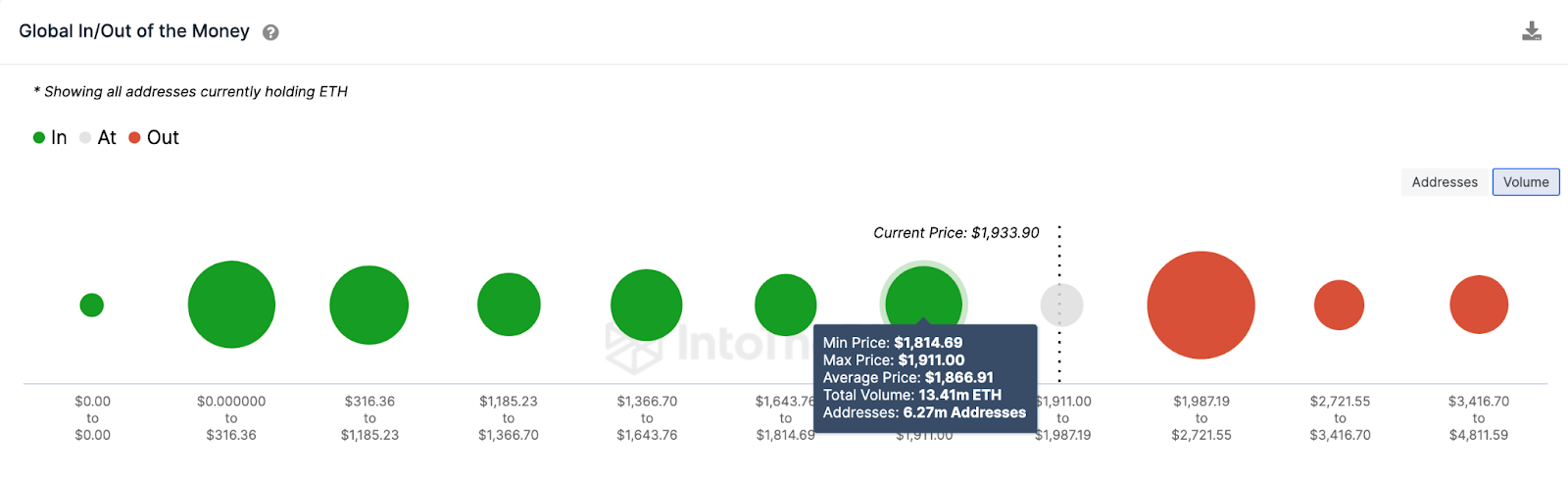 However, the bulls also have a fair chance of staying in control if they can manage to cross the $2,000 milestone. But as seen above, the giant sell-wall mounted by 7.3 million holders that bought 33 million ETH coins at the minimum price of $1,987 could pose a challenge.