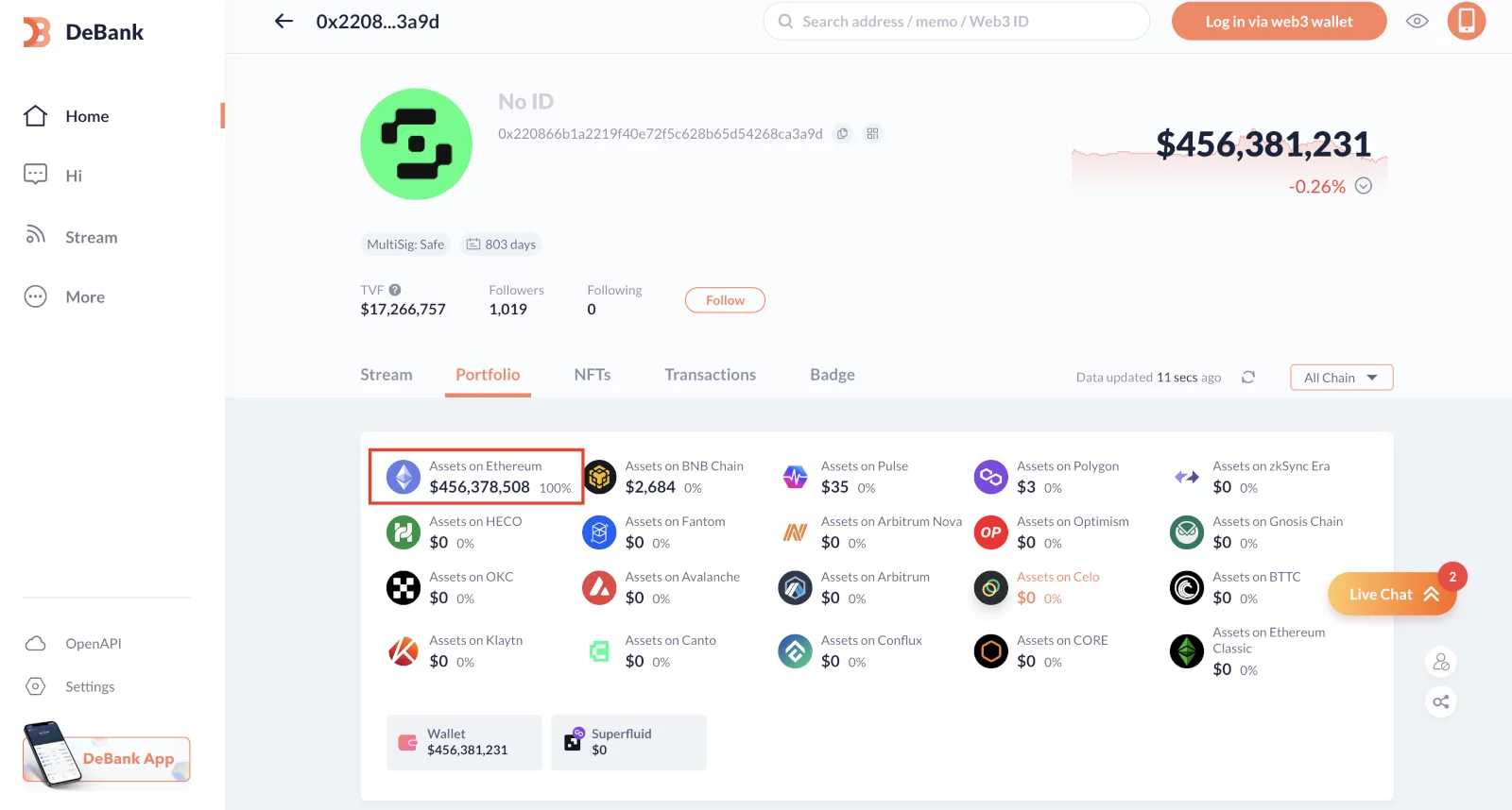 With a net worth of approximately $600 million, his allegedly crypto wallet shows a value of around $500 million, and the rest in personal, off-chain assets. Furthermore, his wealth fluctuates as there is a constant dynamic shift in the market and his donations to various causes.