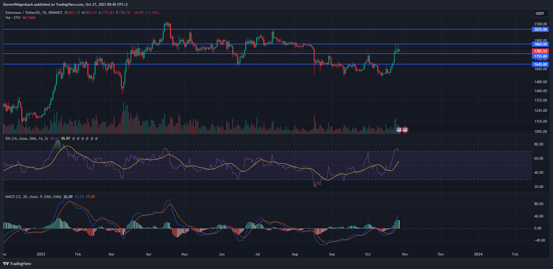 From a technical perspective, ETH has been in a consolidation phase between $1,755 and $1,860 over the past few days. However, technical indicators on the altcoin’s daily chart suggested that it may break below this channel in the next 24-48 hours.