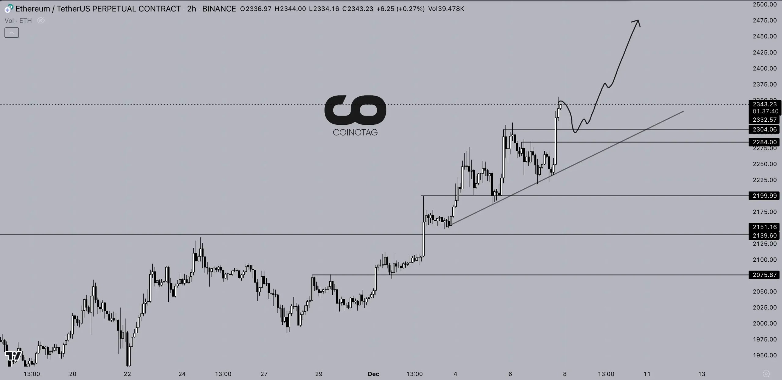 (ETH) finds strong support in the range of $2304 – $2284 on the 2-hour chart. - Staying at these levels presents the potential for ETH to rise up to $2475.