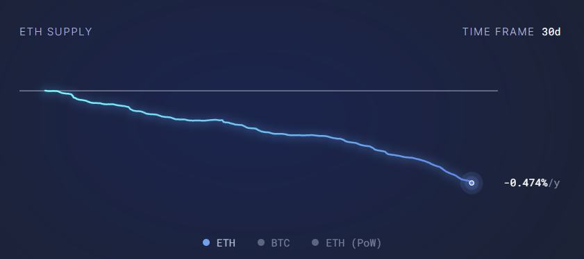 The Ethereum network’s growth has increased gas fees and turned the network deflationary again. The last time Ethereum network emissions were inflationary was on Nov. 8, showing sustained activity growth for the past 30 days. If this trend continues, Ether’s coin supply will contract by -0.47% a year.