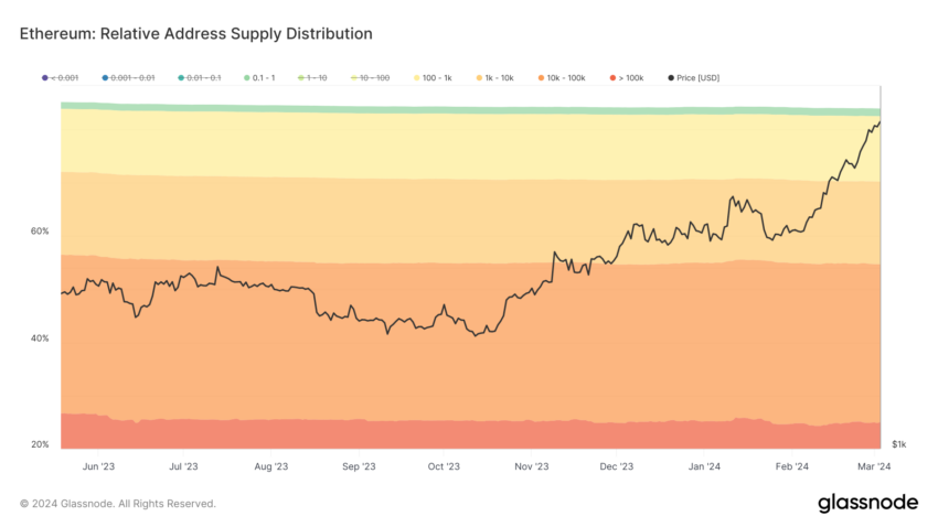 The Ethereum price shot up along with Bitcoin throughout February to see new yearly highs, but this did not seem to warrant any radical reaction from ETH holders.