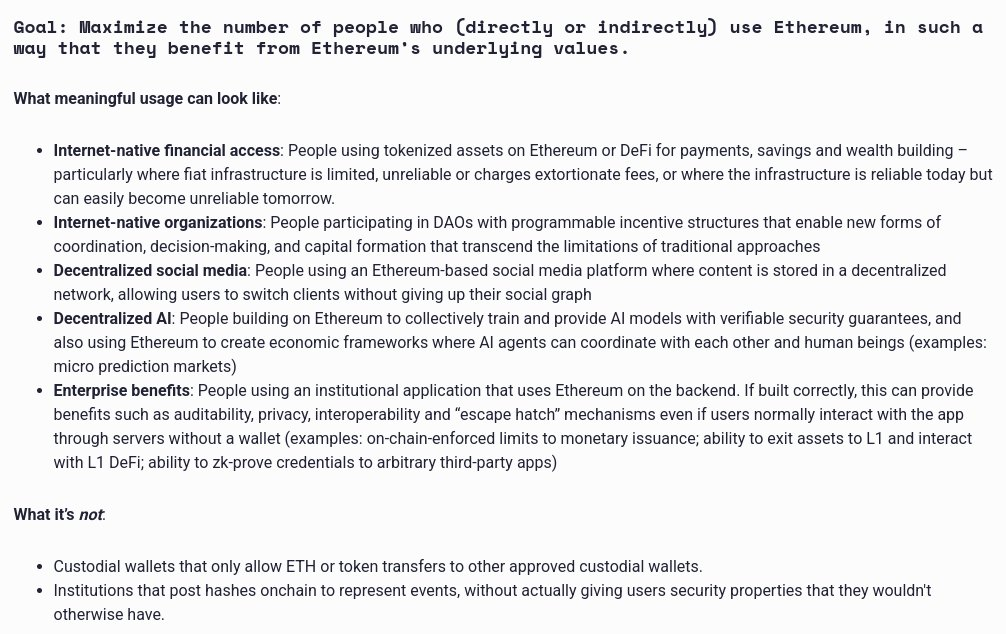 Buterin prioritizes usage expansion as his main initiative for Ethereum development, wherein it plans to expand the practical applications to its end-users, enabling developers to build a wide range of applications on the platform.