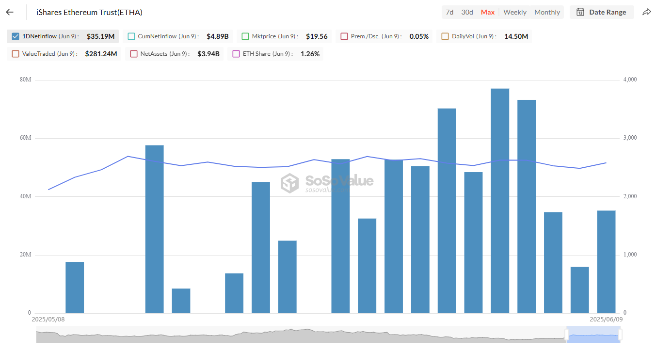 One major reason Axel Bitblaze remains bullish on ETH is BlackRock’s aggressive accumulation. Since May 9, 2025, BlackRock has bought 269,000 ETH—worth roughly $673.4 million—without selling a single coin. This signals a long-term investment strategy in ETH.