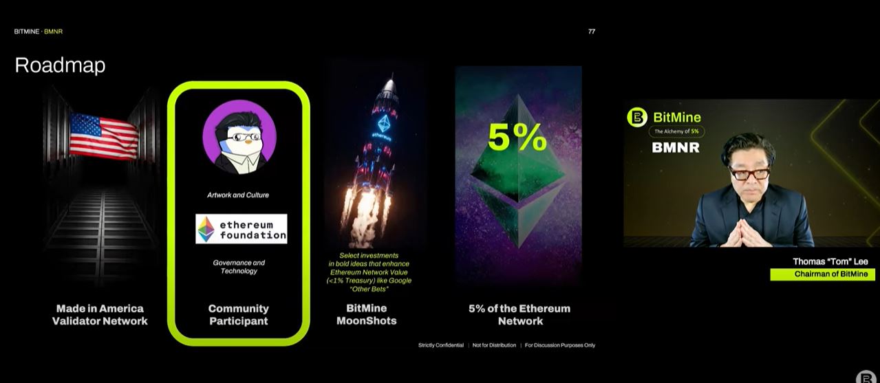 During the presentation, Lee confirmed BitMine holds 600,000 Ether worth over $2.2 billion.