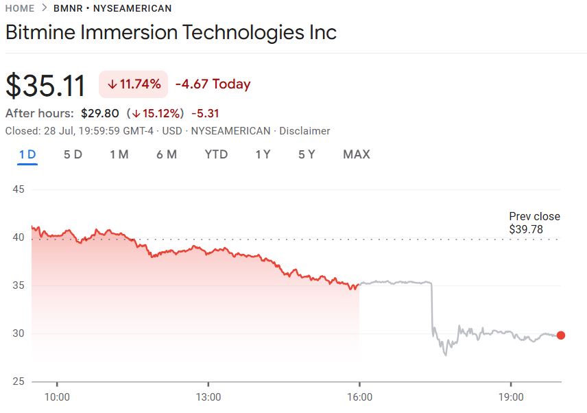 It contrasts with its stock movement in the days after announcing its plans to buy Ether, when Bitmine stock skyrocketed more than 3,000% to a yearly high of $135 on July 3.