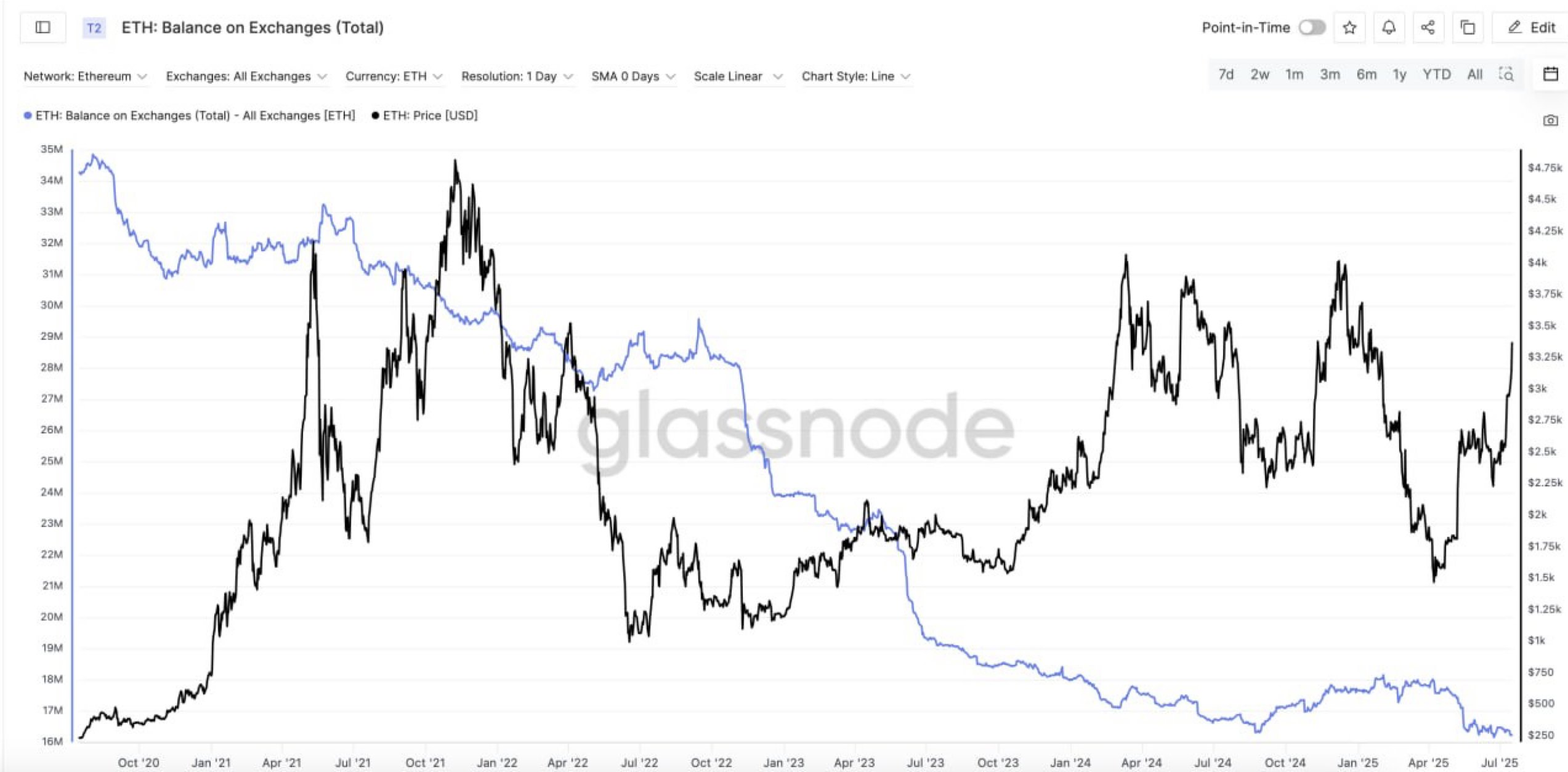 “Since [July 17th]. ETH has now hit a new nine-year low on exchanges. The last time it was this low was the ICO. Of course, supply can come in. But let’s not discount the fact that if this demand keeps up things can potentially get crazy irrational. Nothing we haven’t seen before.”