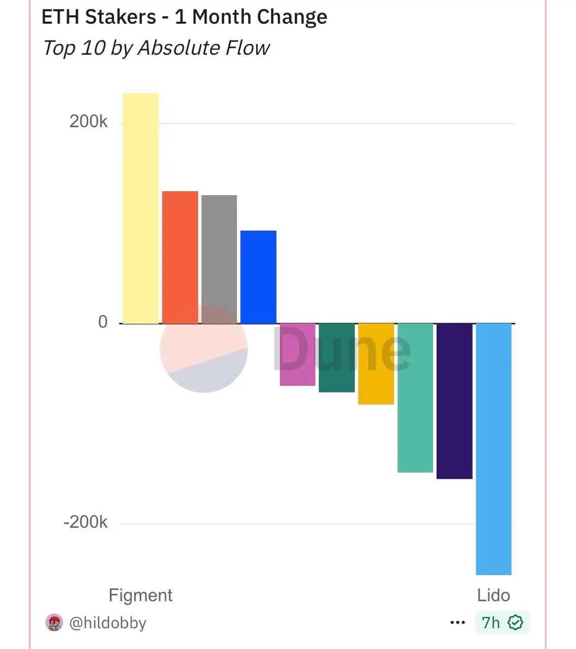 Interestingly, liquid staking protocols account for most of the unstaked ETH. Dune Analytics data shows that the top three unstakers in the past month are Lido with 251,104 ETH, Ether.fi with 155,104 ETH, and P2P.org with 148,288 ETH.