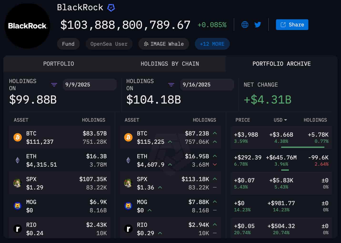 One surprising detail is that while Ethereum’s dollar value grew, the number of ETH in BlackRock’s wallets actually fell by nearly 100,000 tokens during the same period. This drop in token count, combined with the higher price, highlights how volatile institutional trading activity can appear on-chain.