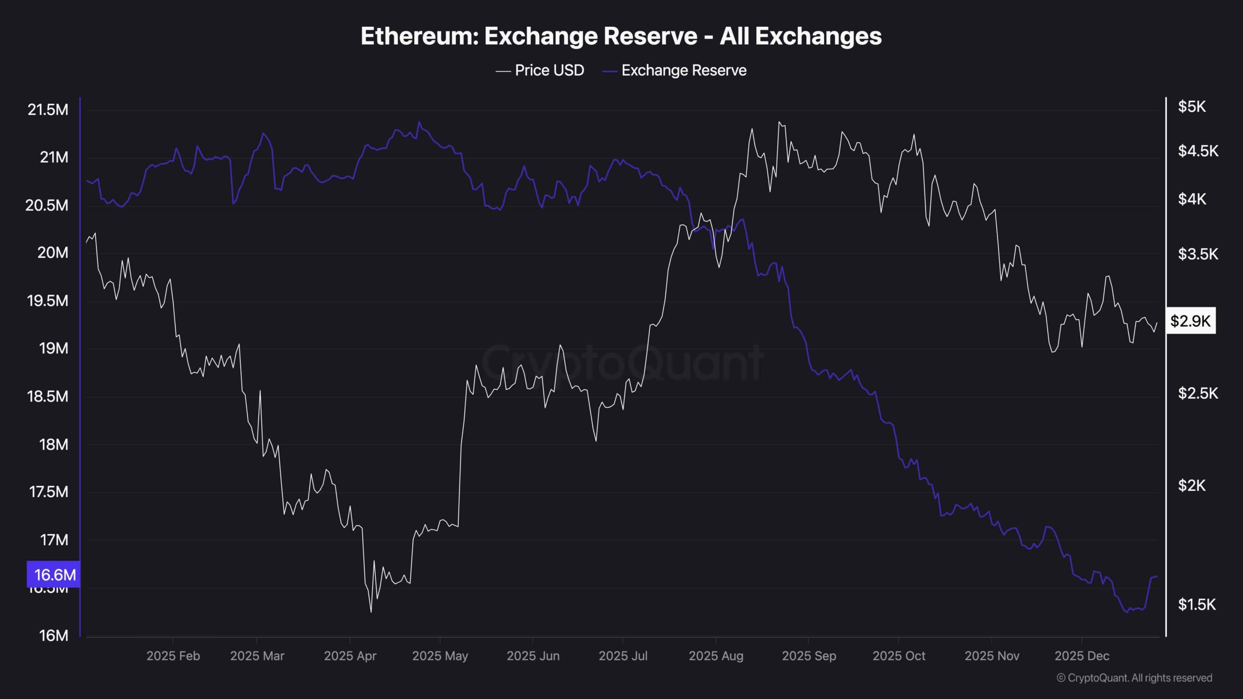 Ethereum’s exchange reserves have been trending down consistently for most of 2025, reflecting a long-term trend toward accumulation or self-custody. This has historically been interpreted as bullish, as fewer tokens on exchanges generally mean less sell pressure.