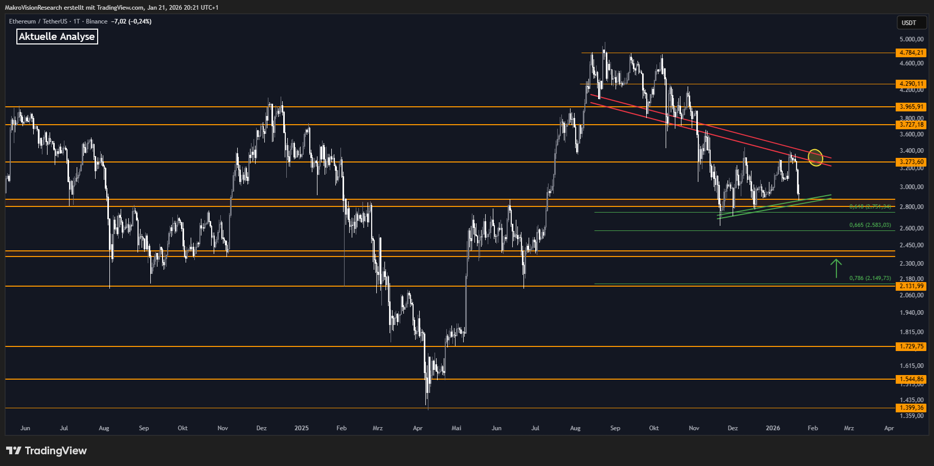 According to the analysis, while the Ethereum price has touched the lower green trendline again, an upward breakout has not yet occurred. MacroVision argued that the current recovery is more of a correction than a strong and momentum-driven rise, and that weakness persists in the market.