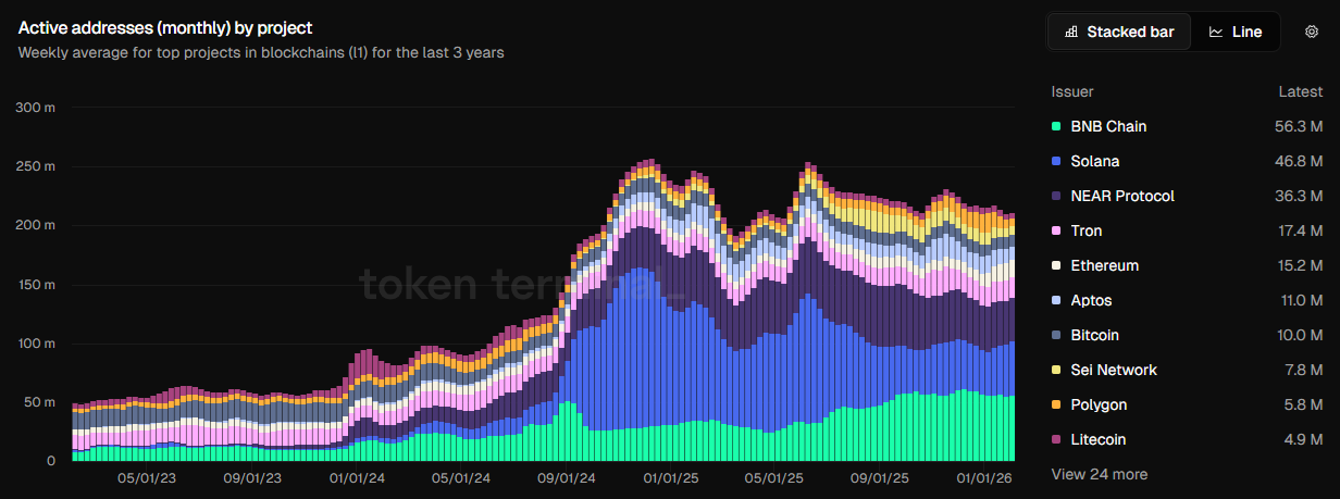 The usage of L1 was mostly linked to specific apps and the available liquidity. Solana and BNB Chain remained active based on meme token trading, while Ethereum retained its status as a key DeFi hub.