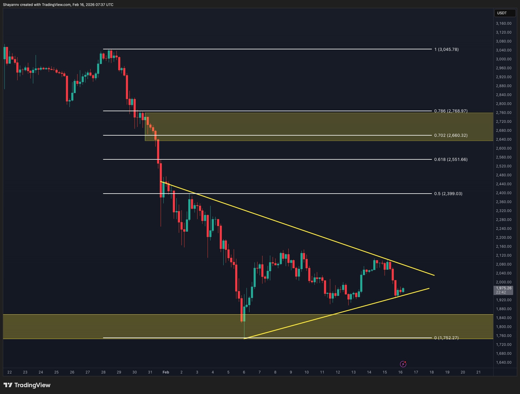 Technically, the asset is confined between the $1.8K static support and the descending channel’s middle boundary, which is acting as dynamic resistance around the $2,500–$2,600 region. As long as Ethereum remains trapped between these two levels, the market structure reflects a fluctuation state rather than a confirmed trend reversal.