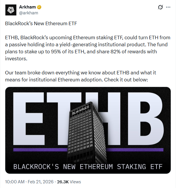 - BlackRock advances plans for ETHB, a staking ETF designed to generate yield for institutional investors.