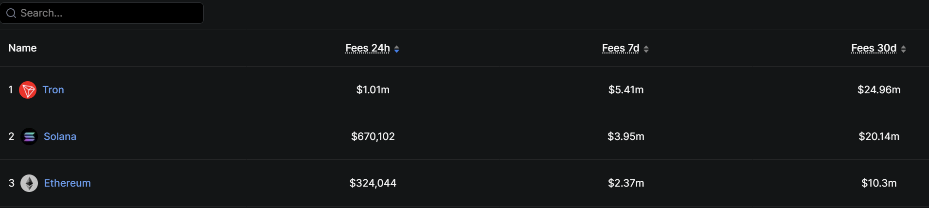 The fee picture reinforces the disconnect. Data from DefiLlama shows Ethereum generated roughly $10.3 million in transaction fees over the past 30 days, placing it third behind Tron at nearly $25 million and Solana at about $20 million.