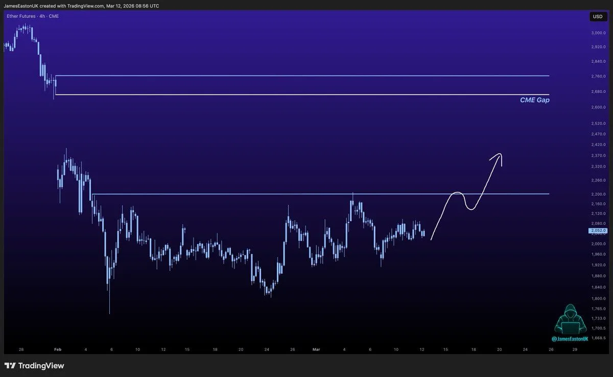 Ethereum CME Gap Becomes Upside Target. Source: JamesEastonUK/X