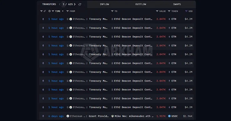 According to Arkham Intelligence, 22,000 $ETH have been staked by the Ethereum Foundation today, March 30, 2026. The foundation transferred these ETHs in 11 batches, and each of these batches carried around 2,047 $ETH.