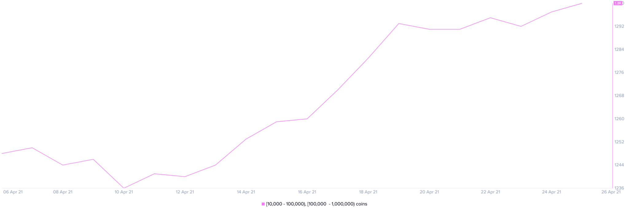 The sudden upswing seems to be correlated with a spike in the number of whales on the network. Ethereum’s supply distribution chart shows that roughly eight new addresses with 10,000 to 1,000,000 ETH joined the network in the past four days.