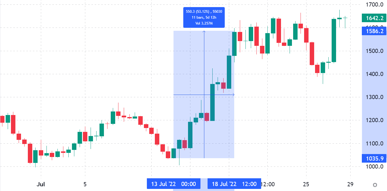 The pump above $1,500 on July 27 surprised bears because only 17% of the put (sell) options for July 29 have been placed above that price level.