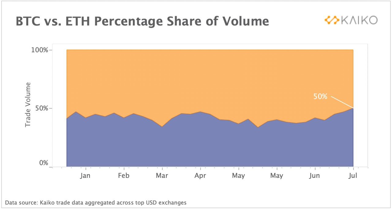 Moreover, ETH’s market share of trade volume achieved 50% parity with Bitcoin’s for the first time in 2022, as published by Kaiko on August 1. While its market value of around $210 billion is still half the size of the world’s biggest cryptocurrency.
