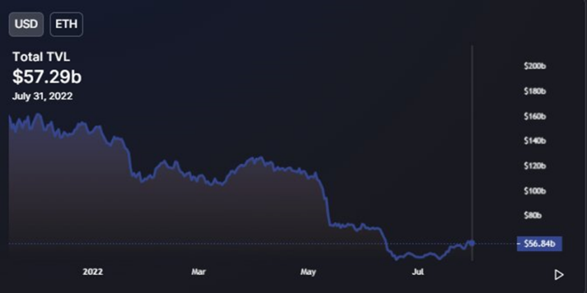 On July 1, Ethereum had a TVL of approximately $46 billion and soared to about $57 billion on July 31.