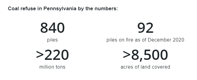 To give a background about waste coal, when rain or snow meets sulfur-rich waste coal dumps, it causes large water polluter called waste coal acid mine drainage (AMD). This AMD runs off and contaminates nearby streams and rivers, which threatens aquatic life.