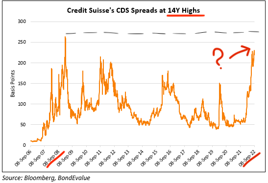 “Credit Suisse’s credit default swaps (CDS) costs have hit the highest level since 2008! A CDS is essentially an insurance purchased against a potential default.”